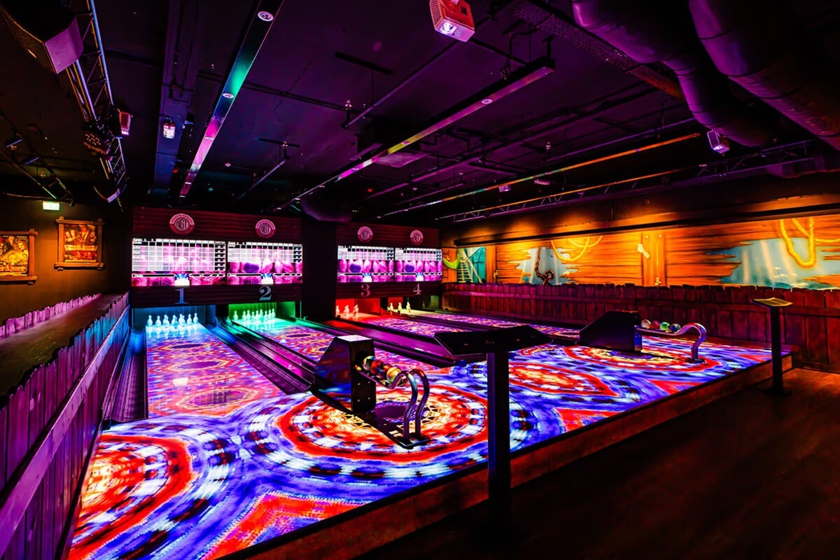 Aloha Amsterdam offers tenpin bowling with a strong party focus, combining LED-lit lanes, music and a playful Hawaiian theme. It’s less about perfect technique and more about atmosphere, making it a popular choice for birthdays, group outings and nights out with friends. With cocktails, shared food and other activities on offer, bowling at Aloha is designed to be part of a larger social experience rather than the main event.