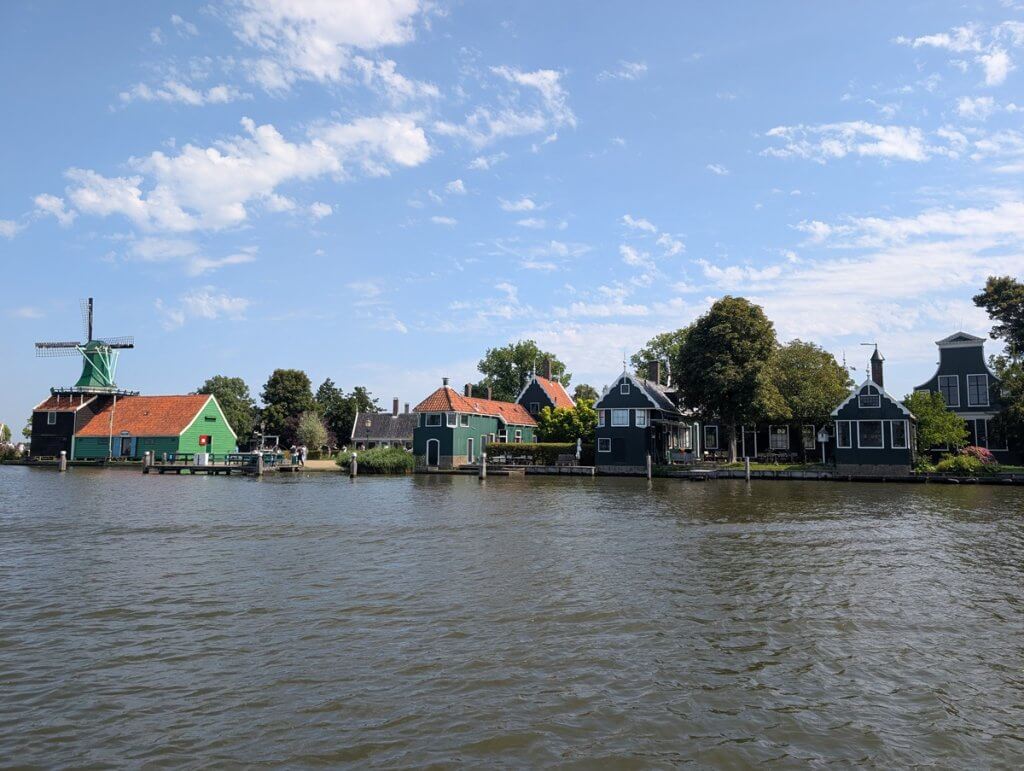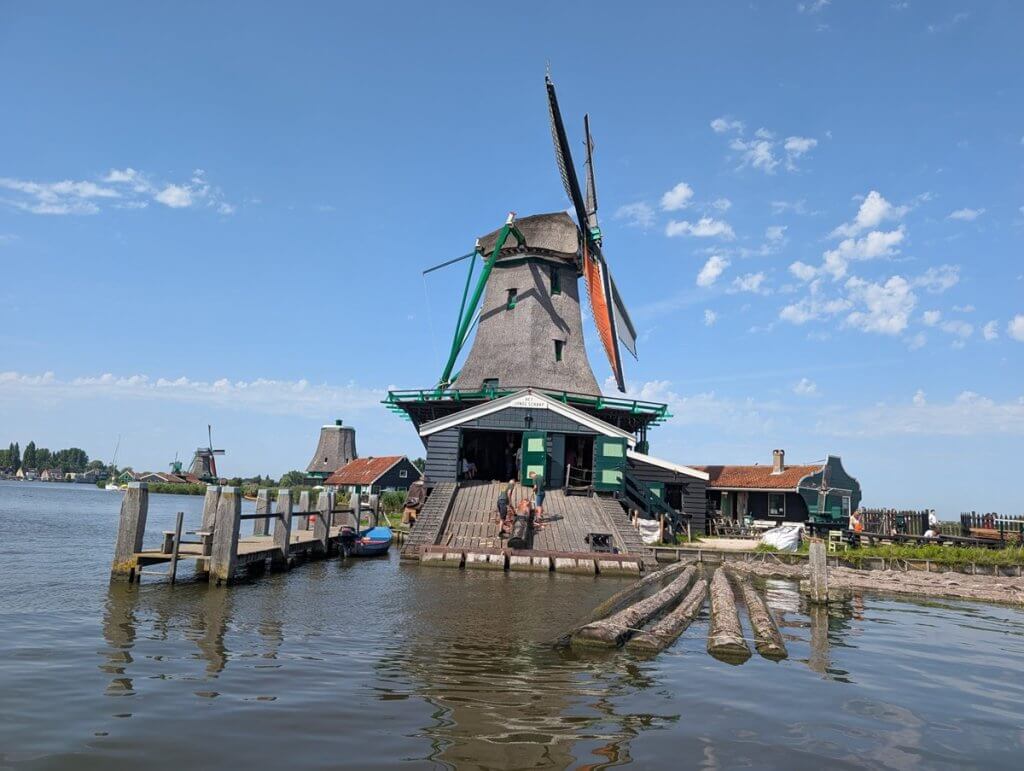 The Zaanse Schans is located in the Dutch town of Zaandam and is not very far away from Amsterdam.